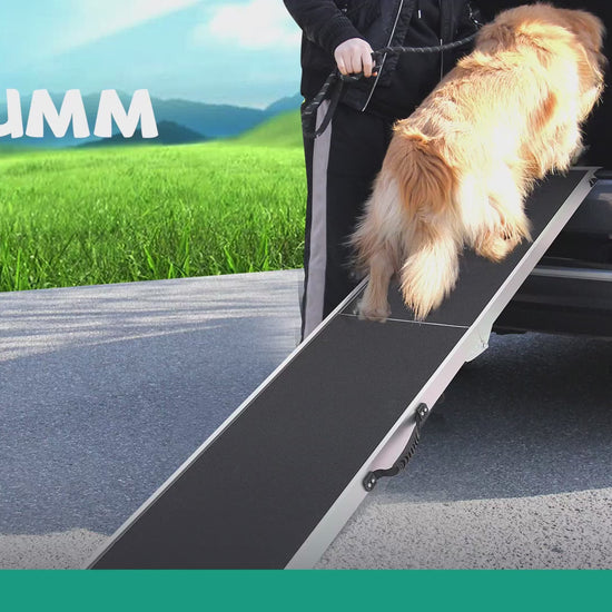 - 【Specifications】The lightweight pet ramp weighs only 6.25 kg and has a load capacity of 180 kg. Unfolded dimensions: 184.5 x 38 cm, and folded dimensions: 83.5 x 38 x 12.3 cm. This pet loading ramp is suitable for trucks, vans, and SUVs. Our pet ramp has a 1-year warranty; artificial damage is not covered.