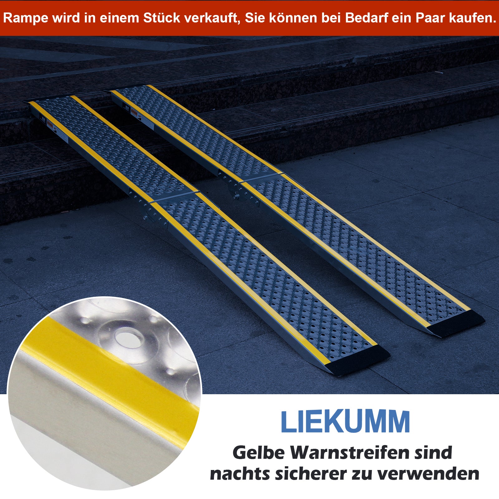 LIEKUMM 1 x 200 cm Auffahrrampe, 300 kg Tragkraft Aluminium Motorrad Rampe Klappbar, Auffahrrampe für Anhänger, ATV, Motorrad, Fahrrad, PKW, Verladerampe für Anhänger