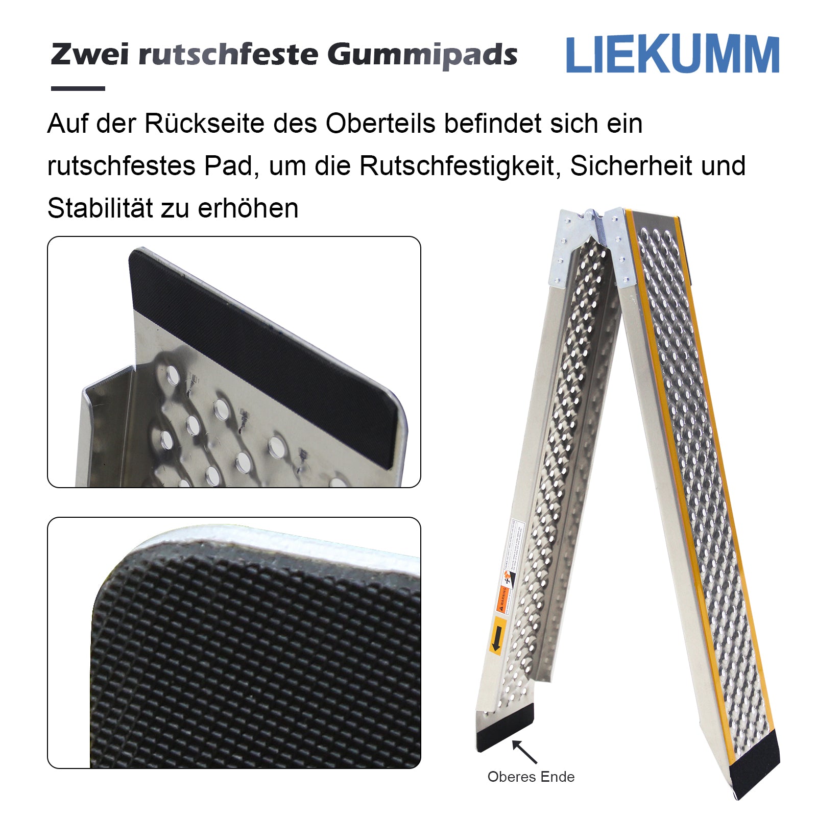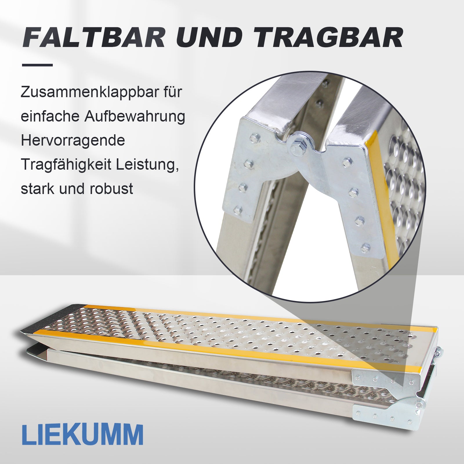 - Schnelle Nutzung ohne Aufwand: Kein Zusammenbau erforderlich, einfach entfalten und loslegen. Die verlängerte Endplatte ermöglicht stabilen Bodenkontakt, was die anhänger rampe besonders sicher und komfortabel macht. Ob im Alltag oder unterwegs, diese auffahrrampe alu klappbar ist sofort einsatzbereit und leicht zu bedienen
