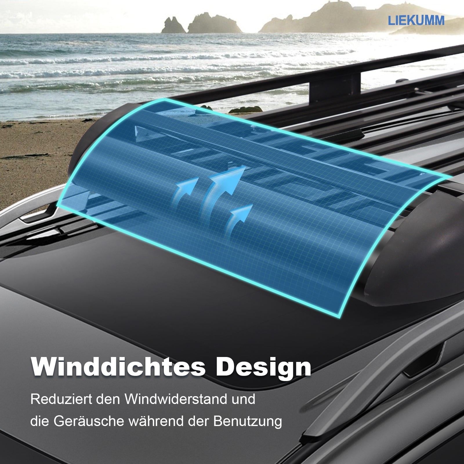 - Aerodynamischer Dachträger – Minimiert Windgeräusche und erhöht die Stabilität:Der aerodynamische Dachgepäckträger reduziert Windgeräusche und sorgt für mehr Stabilität beim Fahren. Perfekt für den Transport von Fahrradträgern und Dachboxen bei hohen Geschwindigkeiten