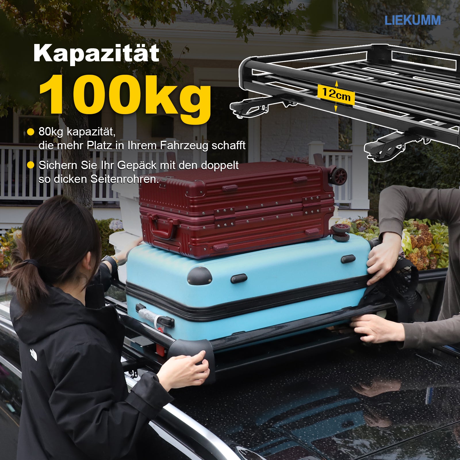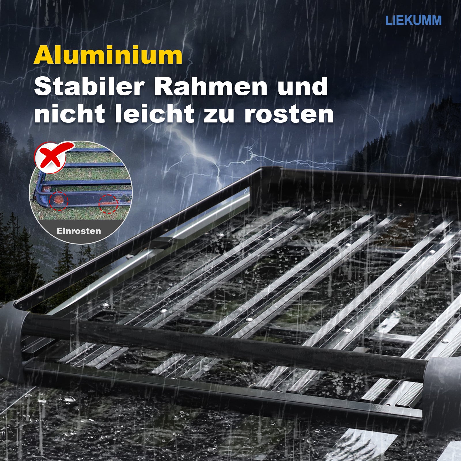 - Leichtgewicht und Langlebig – Robustes Aluminium für hohe Tragkraft:er Dachträger Aluminium ist aus einer robusten Aluminiumlegierung gefertigt, die leicht und langlebig ist. Er trägt bis zu 100 kg, ideal für den Transport von Gepäck und Outdoor-Ausrüstung