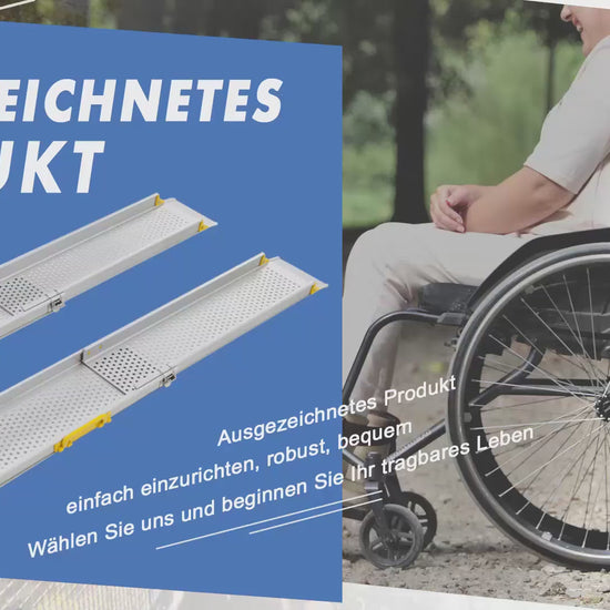Hohe Tragfähigkeit für maximale Sicherheit: Diese Teleskop Auffahrrampe für Rollstühle besteht aus hochwertigem Aluminium und trägt eine Last von bis zu 400 kg bei einer Stoßbelastung von 300 kg. Die rutschfesten Gummipads an der Unterseite sorgen für optimalen Halt und verhindern ein Verrutschen – ideal als Schwellenrampe oder Rollstuhlrampe für Treppen