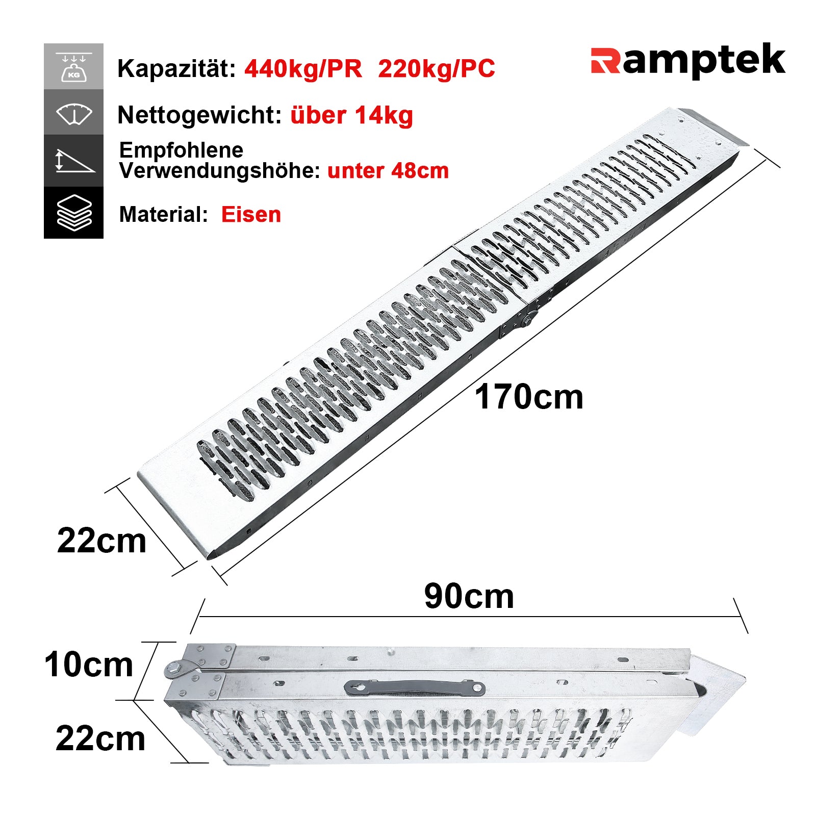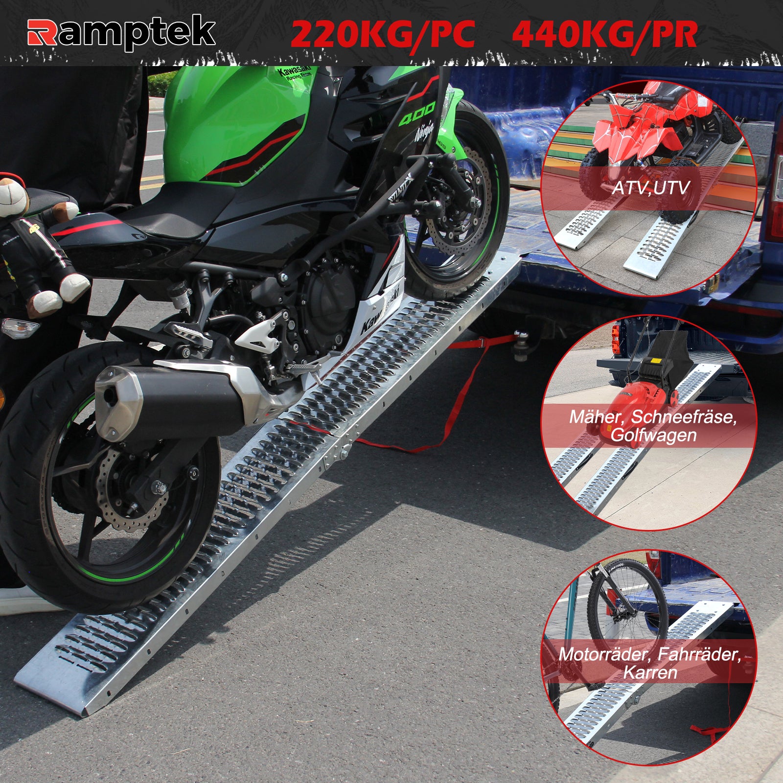 2X Auffahrrampe 440kg klappbar Laderampe, Stahl Verladerampe Laderampen für Anhänger Motorrad ATV Quad (170 x 22 cm)