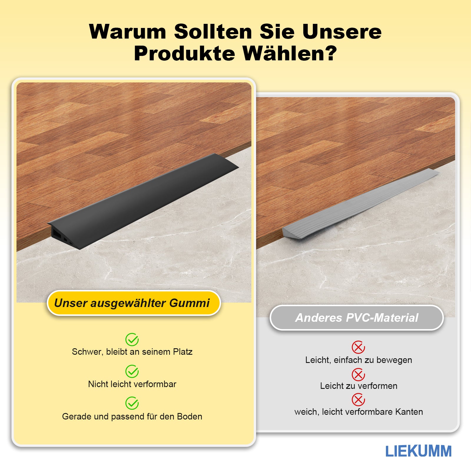 - Hinweis zur Anwendung: LIEKUMM schwellenrampe sollte nur auf ebenen Flächen verwendet werden, um maximale Haftung und Sicherheit beim Überqueren von türschwellenrampe oder Bodenunterschieden zu gewährleisten. Falls die gummirampe türschwelle für Ihre Anwendung zu lang ist, kann sie einfach individuell zugeschnitten werden